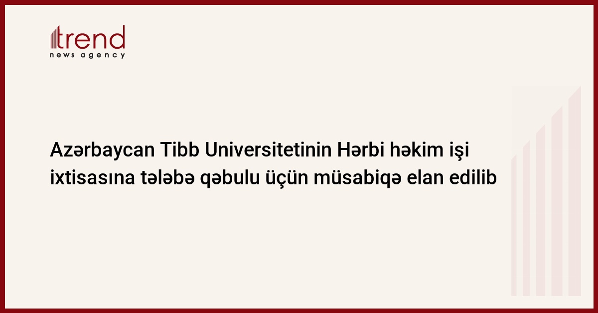 Tələbə Qəbulu üzrə Dövlət Komissiyası Azərbaycan Tibb Universitetinin Hərbi Tibb fakültəsinin Hərbi həkim işi ixtisasına tələbə qəbulu üçün müsabiqə elan edir.