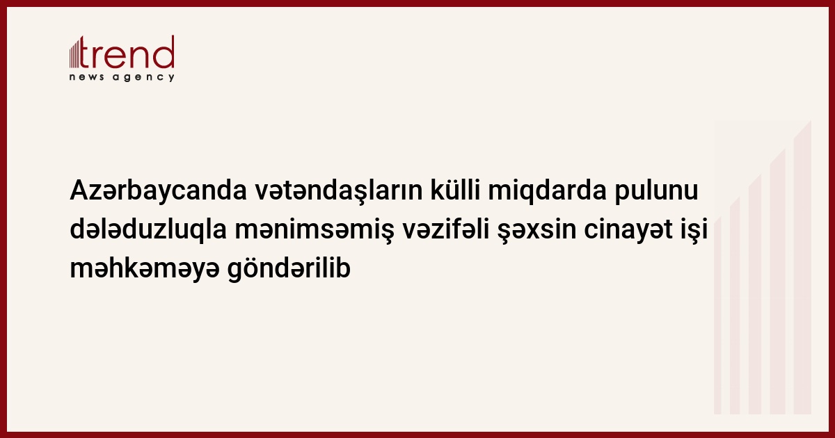 "Dərmirbank"ın vəzifəli şəxsinin cinayət işi baxılması üçün məhkəməyə göndərilib.