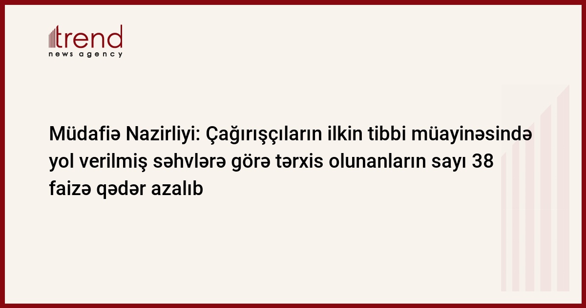 Müdafiə naziri general-polkovnik Zakir Həsənovun göstərişinə əsasən, hərbi xidmətə çağırılanların dərinləşdirilmiş müayinəyə cəlb olunması və hərbi xidmətə yararsız olan 205 nəfər çağırışçının geri qaytarılması nəticəsində, çağırışçıların ilkin tibbi müayinəsində yol verilmiş səhvlərə görə tərxis olunanların sayı cari ilin 6 ayında 38 faizə qədər azalıb. Hazırda gənc əsgərlərin arasında xəstələrin seçilməsi davam etdirilir.