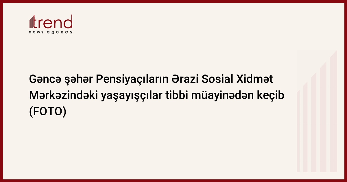 Bu gün Gəncə şəhər İcra Hakimiyyətinin dəstəyi, YAP Gəncə şəhər təşkilatının təşəbüsü ilə şəhər səhiyyə idarəsinin bir qrup həkimləri Gəncə şəhər Pensiyaçıların Ərazi Sosial Xidmət Mərkəzindəki yaşayışçıları tibbi müayinədən keçirib.