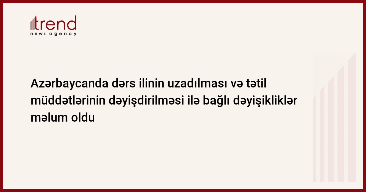 Azərbaycanda yeni tədris ilinin uzadılması və tətil müddətlərinin dəyişdirilməsi ilə bağlı gözlənilən dəyişikliklər məlum oldu.