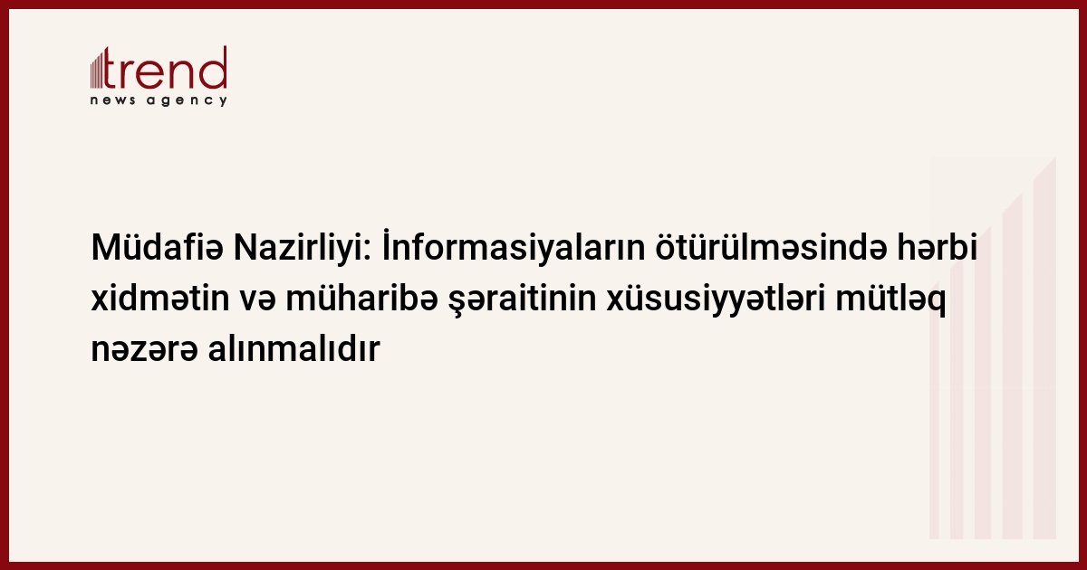 "Biz sağlam tənqidin, düzgün iradın, məsuliyyət və peşəkarlığın tərəfdarıyıq, ancaq Ordu məsələsində qərəz, kin, ayrı-seçkilik yolverilməzdir. İnformasiyaların ötürülməsində hərbi xidmətin və müharibə şəraitinin xüsusiyyətləri, Müdafiə Nazirliyinin qapalı qurum olması və bir sıra digər amillər mütləq nəzərə alınmalıdır". Bunu Trend-in sorğusuna cavab olaraq Müdafiə Nazirliyinin mətbuat xidmətinin rəhbəri polkovnik Vaqif Dərgahlı deyib.