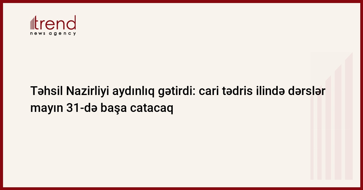 Cari tədris ilində dərslər mayın 31-də başa catacaq.