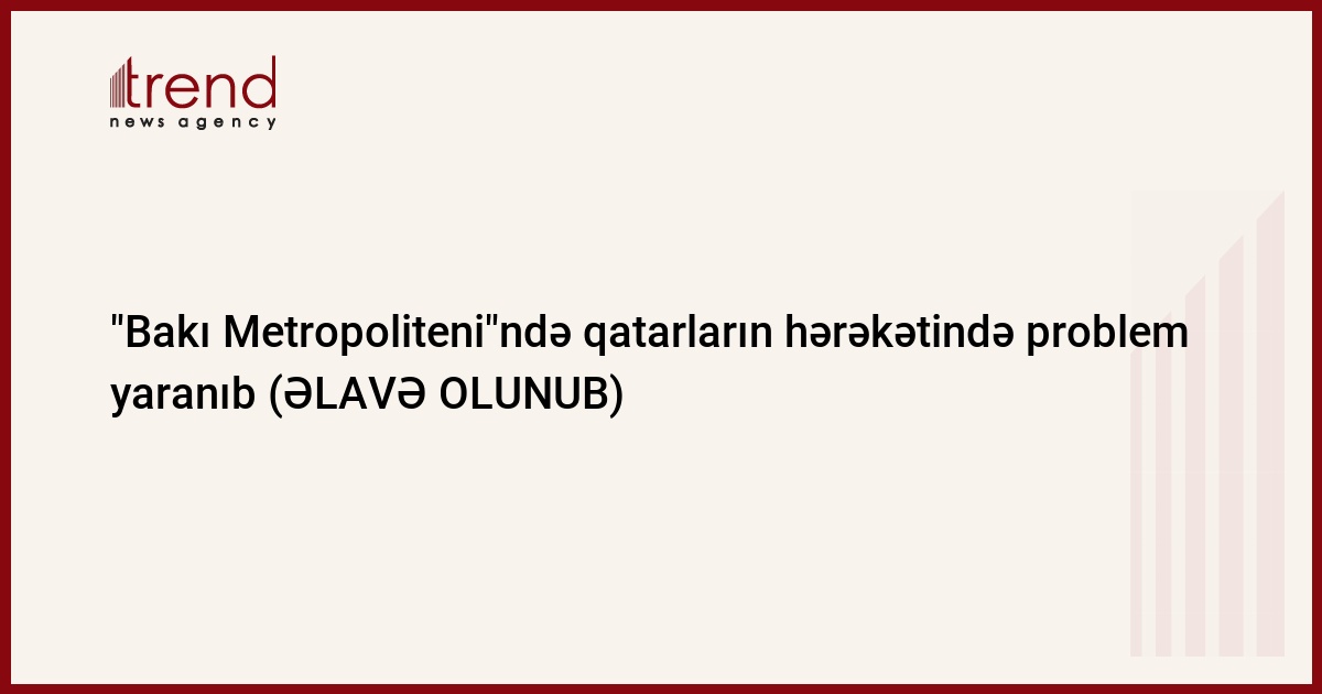 "Bakı Metropoliteni"ndə qatarların hərəkətində problem yaranıb. Bunu Trend-ə "Bakı Metropoliteni" QSC-nin Mətbuat xidməti və ictimaiyyətlə əlaqələr şöbəsinin rəisi Nəsimi Paşayev deyib.