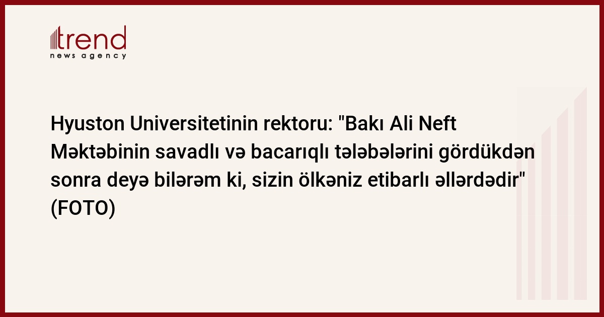 - Azərbaycanla Texas ştatı arasında təbii bağlar mövcuddur ki, bu da ilk növbədə neftə olan ortaq marağımızdan irəli gəlir. Bu, bizim öz ehtiyyatlarımızdan necə istifadə edəcəyimizlə, bunun üçün daha səmərəli istehsal yolları, kəşfiyyat yollarının mövcudluğu ilə və həmçinin, ən müasir texnologiyaya əsaslanan tədqiqatı necə aparmağımızla bağlıdır. Təhsil sahəsində də ortaq maraqlarımız çoxdur. Mən burada bir neçə ali təhsil müəssisəsində qonaq oldum. Onların bir çoxunun demək olar ki, binalarının quruluşunda, xüsusilə də, neft tədqiqatı, neft və qaz sahəsi ilə bağlı olan ixtisasartırma mərkəzlərinin oxşar tərəfləri var. Biz bir neçə sahələr üzrə əməkdaşlıq edə bilərik, xüsusilə də, tələbə və professor-müəllim heyətinin mübadiləsi sahəsində, bununla yanaşı, birgə tədqiqat imkanlarını da mütləq nəzərdən keçirə bilərik. Mübadilənin həyata keçirilməsi Azərbaycanlı tələbələr üçün böyük imkanlar yaradacaq. Onlar Hyuston Universitetində təhsil almaq imkanı qazana bilərlər.