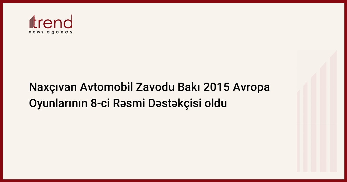 Bakı 2015 Avropa Oyunları Əməliyyat Komitəsi Naxçıvan Avtomobil Zavodunun (NAZ) bu yay keçiriləcək ilk Avropa Oyunlarının Rəsmi Dəstəkçisi elan edildiyi sazişə imza atıb.
