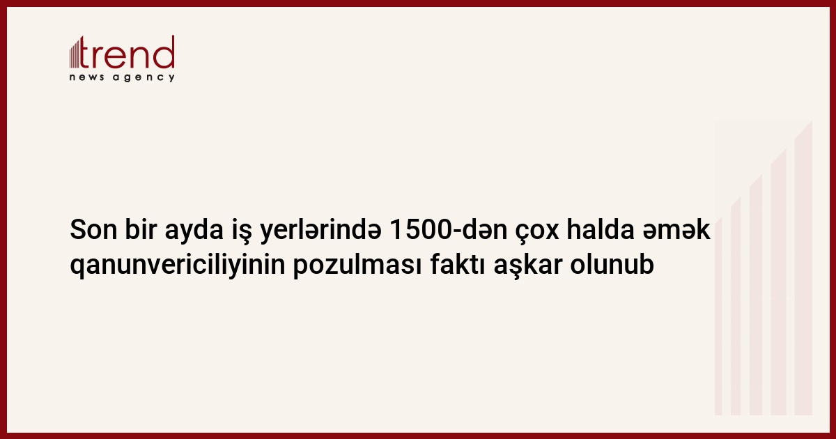 Cari ilin fevral ayında Azərbaycan Respublikasının Əmək və Əhalinin Sosial Müdafiəsi Nazirliyi yanında Dövlət Əmək Müfəttişliyi Xidməti (DƏMX) müəssisə, idarə və təşkilatlarda əmək qanunvericiliyinə əməl olunmasına dövlət nəzarəti zamanı işəgötürənlər tərəfindən 1504 halda əmək qanunvericiliyinin tələblərinin pozulması faktını aşkar edib.