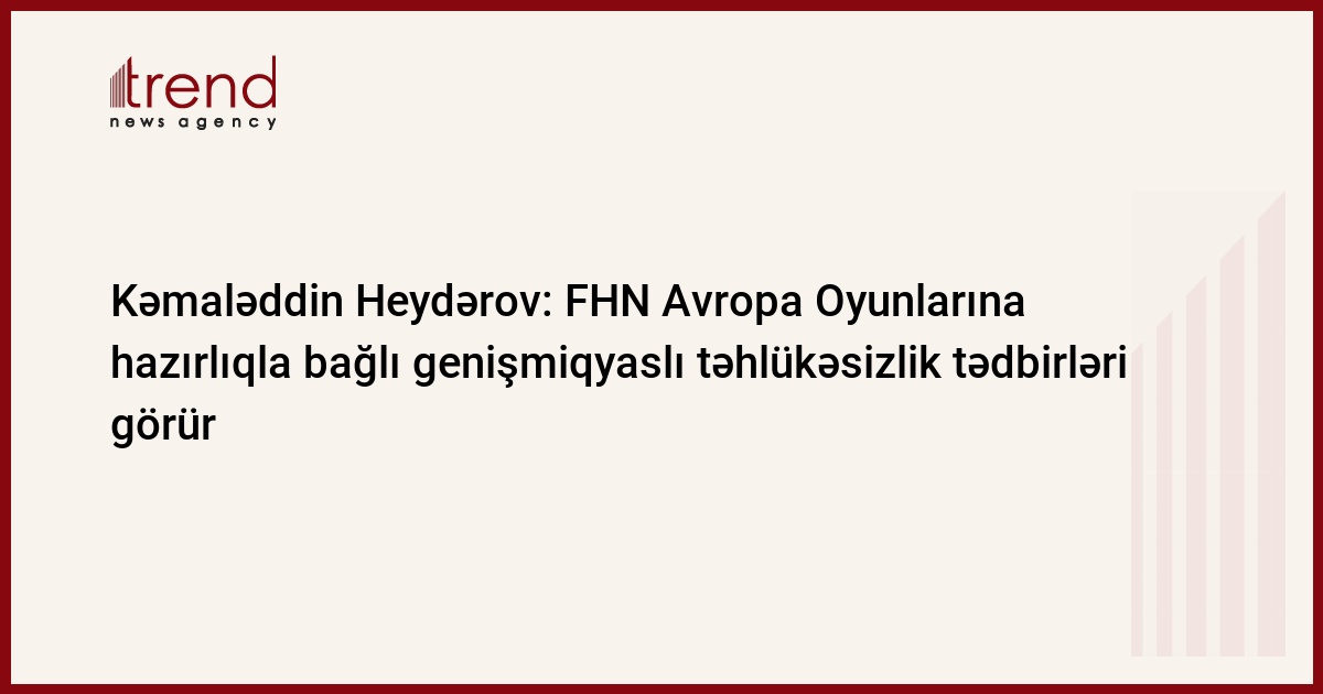Fövqəladə Hallar Nazirliyinin (FHN) mətbuat xidmətindən Trend-ə verilən məlumata görə, K.Heydərov nazirliyin UNICEF-in Bakı ofisi ilə sıx əməkdaşlıq etdiyini, bir sıra mühüm layihələr həyata keçirdiyini diqqətə çatdırıb. O, Azərbaycanın ev sahibliyi edəcək Birinci Avropa Oyunlarının ölkəmizin tarixində ən əlamətdar hadisələrdən biri olduğunu, FHN-in əməkdaşları tərəfindən bu əlamətdar tədbirə hazırlıqla bağlı genişmiqyaslı texniki və təhlükəsizlik tədbirləri proqramının həyata keçirildiyini bildirib.