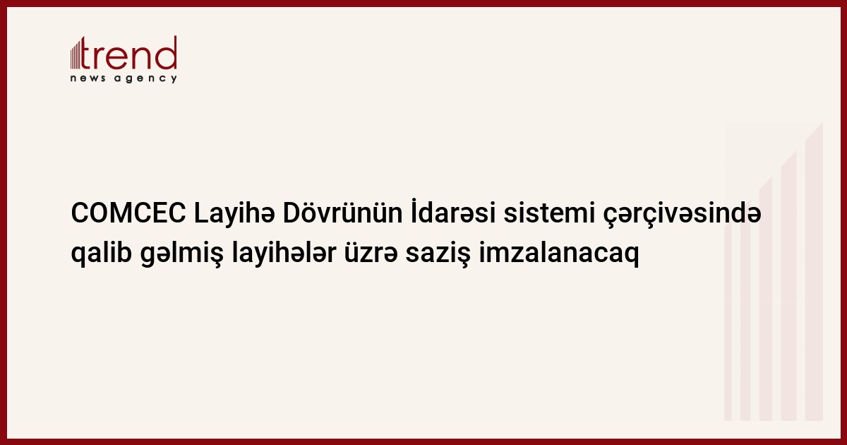 İslam Əməkdaşlıq Təşkilatının (İƏT) İqtisadi və Ticarət Əməkdaşlığı üzrə Daimi Komitəsinin (COMCEC) Layihə Dövriyyəsinin İdarə edilməsi sistemi çərçivəsində 2-ci layihə çağırışına əsasən Azərbaycan Mədəniyyət və Turizm Nazirliyinin "Ümumi Mədəni İrs Şəhərlərinin Təbliği" layihəsi qalib gəlib və Komitənin təqdim etdiyi qranta layiq görülüb.