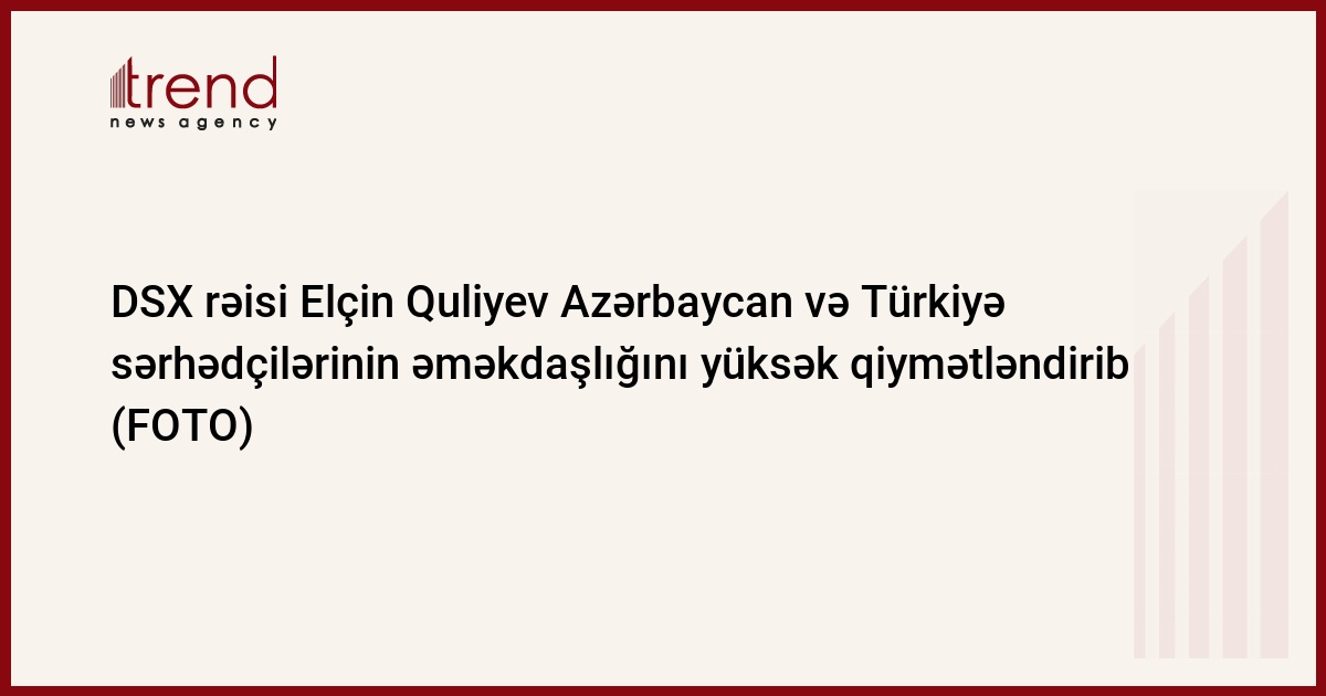 DSX-nın mətbuat mərkəzindən Trend-ə verilən məlumata görə, DSX rəisi - Sərhəd Qoşunlarının Komandanı general-polkovnik Elçin Quliyev bu gün Dövlət Sərhəd Xidməti Aparatında Türkiyə Silahlı Qüvvələrinin Hərbi Attaşesi və Hərbi Əməkdaşlıq üzrə koordinasiya qurumunun rəhbəri general-leytenant Hasan Nevzat Taşdeleri səlahiyyət müddətinin bitməsi ilə əlaqədar qəbul edib.