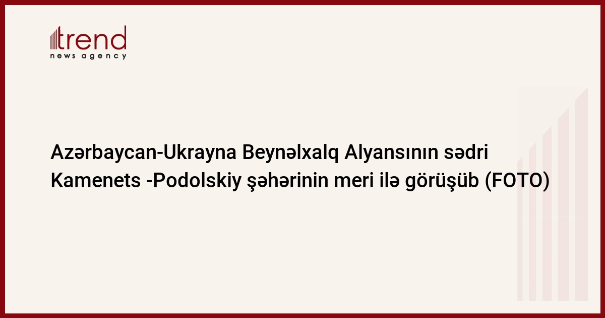 Trend-in məlumatına görə, görüşdə Azərbaycan-Ukrayna Beynəlxalq Alyansının sədri Elmar Məmmədov ilə Ukraynanın Kamenets -Podolskiy şəhərinin meri Mixail Cimaşkeviç arasında keçirilən görüşdə ölkələr arasında investisiya layihələrinin gerçəkləşdirilməsi, turizm sahəsində birgə layihələrin işlənməsi məsələləri müzakirə edilib.