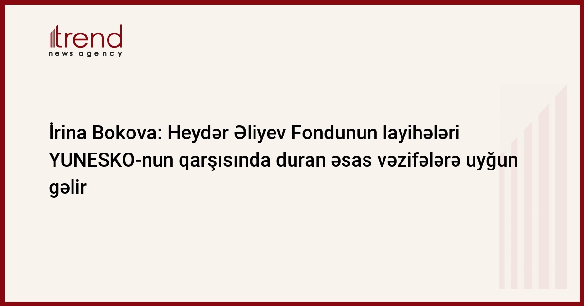 YUNESKO rəhbəri həmçinin YUNESKO-nun fəaliyyət göstərdiyi sahələrdə tədbirlərin keçirilmə yolu ilə strateji məqsədlərə və tapşırıqlara nail olmaq üçün Mehriban Əliyevanın prezidenti olduğu Heydər Əliyev Fondu ilə təşkilatın sıx əməkdaşlığını qeyd edib.