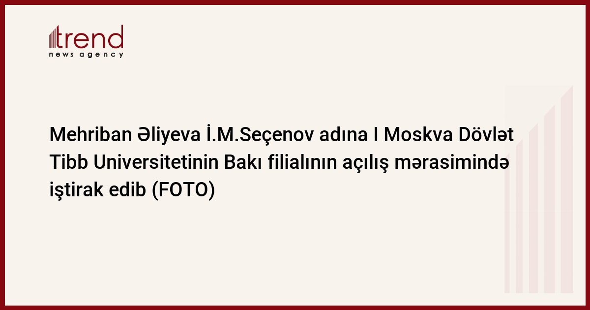Sentyabrın 15-də İ.M.Seçenov adına I Moskva Dövlət Tibb Universitetinin Bakı filialının təntənəli açılış mərasimi olub. Azərbaycanın birinci xanımı, Heydər Əliyev Fondunun prezidenti Mehriban Əliyeva mərasimdə iştirak edib.
