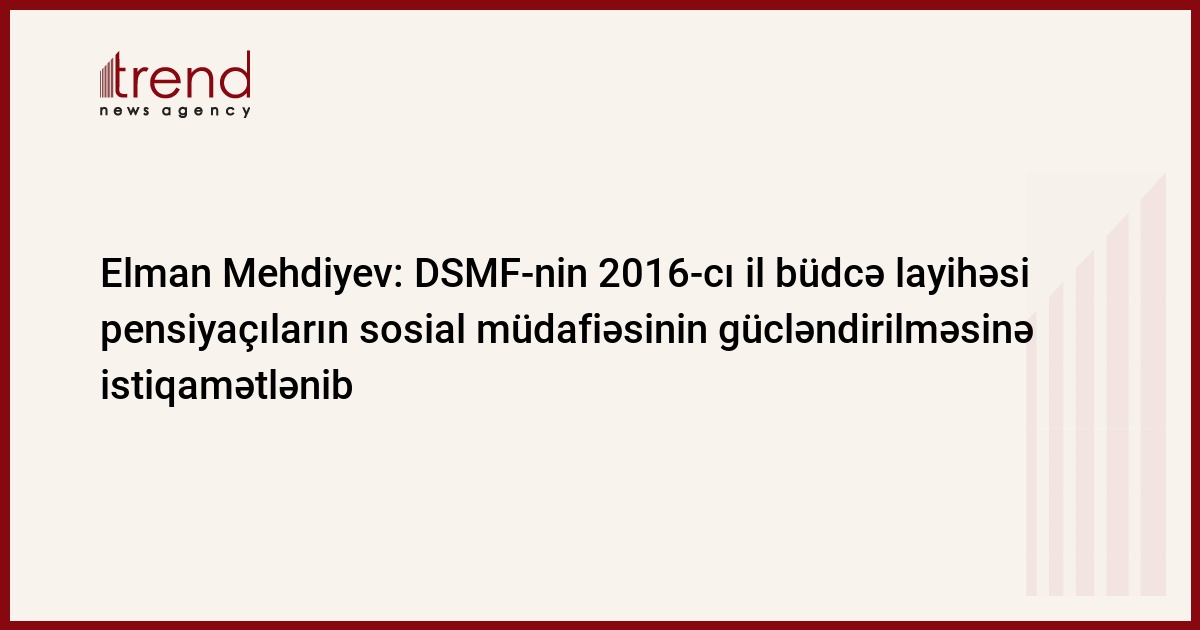 "Azərbaycan Respublikasının Prezidenti cənab İlham Əliyevin reallaşdırdığı sürətli islahatlar nəticəsində respublikamızda əldə olunan dayanıqlı inkişaf məqsədyönlü şəkildə vətəndaşların rifahının yaxşılaşdırılmasına yönəldilməkdədir. Bu siyasətin prioritet istiqamətlərindən biri kimi pensiyaçıların sosial müdafiəsinin davamlı olaraq gücləndirilməsi Azərbaycan Respublikası Dövlət Sosial Müdafiə Fondunun 2016-cı il büdcə layihəsinin əsas qayəsini təşkil edir."
