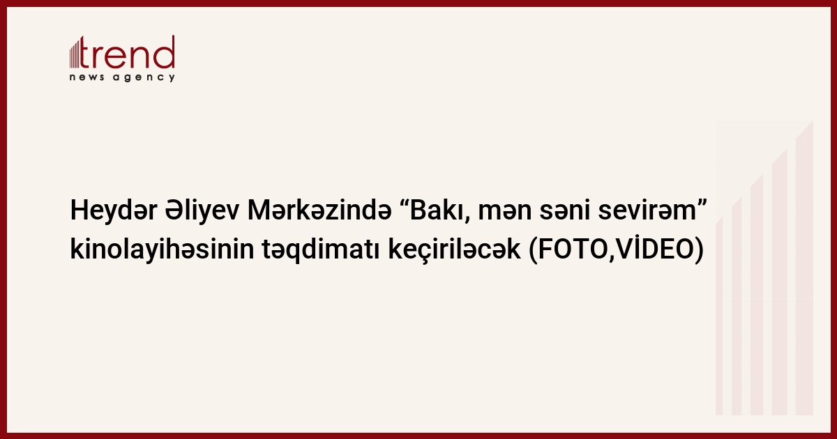 Heydər Əliyev Fondunun dəstəyi ilə həyata keçirilən "Bakı, mən səni sevirəm" kinolayihəsinin oktyabrın 23, 24 və 25-də təqdimatı keçiriləcək.