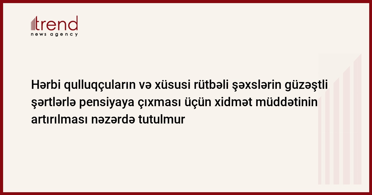 Hərbi qulluqçuların və xüsusi rütbəli şəxslərin güzəştli şərtlərlə pensiyaya çıxması üçün tələb olunan xidmət müddətinin 30 ilə qaldırılması nəzərdə tutulmur.