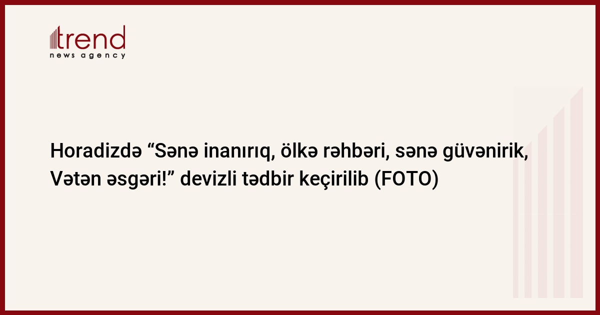 Müdafiə Nazirliyinin (MN) mətbuat xidmətindən Trend-ə verilən məlumata görə, MN-nin və Füzuli rayon icra hakimiyyətinin birgə təşkilatçılığı ilə Horadiz şəhər stadionunda "Sənə inanırıq, ölkə rəhbəri, sənə güvənirik, Vətən əsgəri!" devizi altında teatrlaşdırılmış kütləvi hərbi vətənpərvərlik bayramı keçirilib.