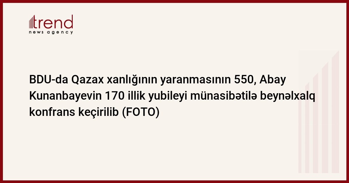 Bakı Dövlət Universitetində Qazax xanlığının yaranmasının 550 və müasir qazax yazılı ədəbiyyatının banisi, filosof, böyük ictimai xadim və maarifçi Abay Kunanbayevin 170 illik yubileyi münasibətilə beynəlxalq konfrans keçirilib. Trend-in məlumatına görə, əvvəlcə konfrans iştirakçıları Qazaxıstan Respublikasının tarixi və mədəniyyətinə həsr olunmuş kitabların sərgisi və BDU-da fəaliyyət göstərən Abay Kunanbayev adına Mərkəzin fəaliyyəti ilə tanış olublar.
