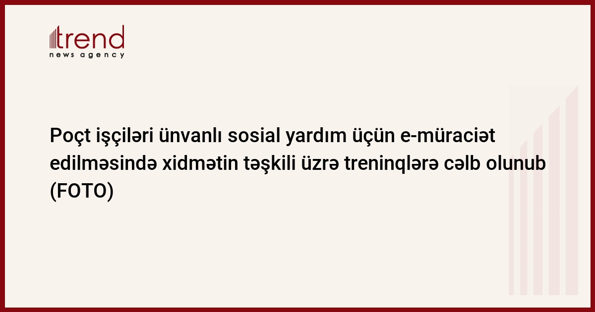 Poçt işçiləri ünvanlı sosial yardım üçün elektron müraciət edilməsi sahəsində əhaliyə xidmətin təşkili üzrə treninqlərə cəlb olunublar.