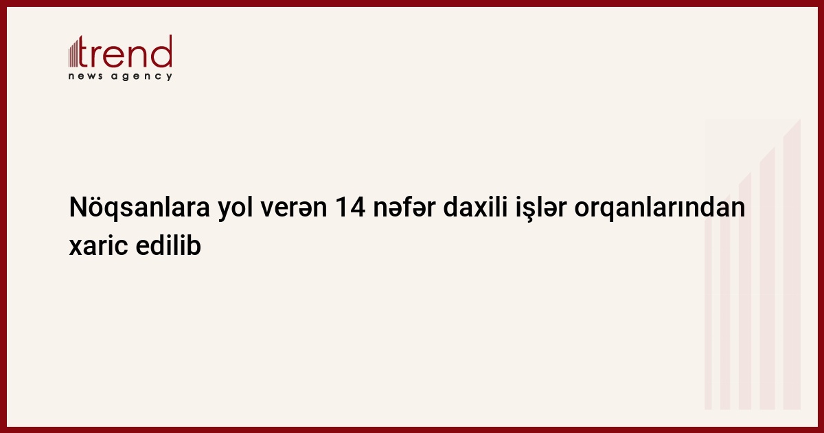 Həmin şəxslərdən 14 nəfəri daxili işlər orqanlarında xidmətdən xaric edilib, 2 nəfər tutduğu vəzifədən azad olunub, 69 əməkdaş barəsində isə digər intizam tədbirləri görülüb.