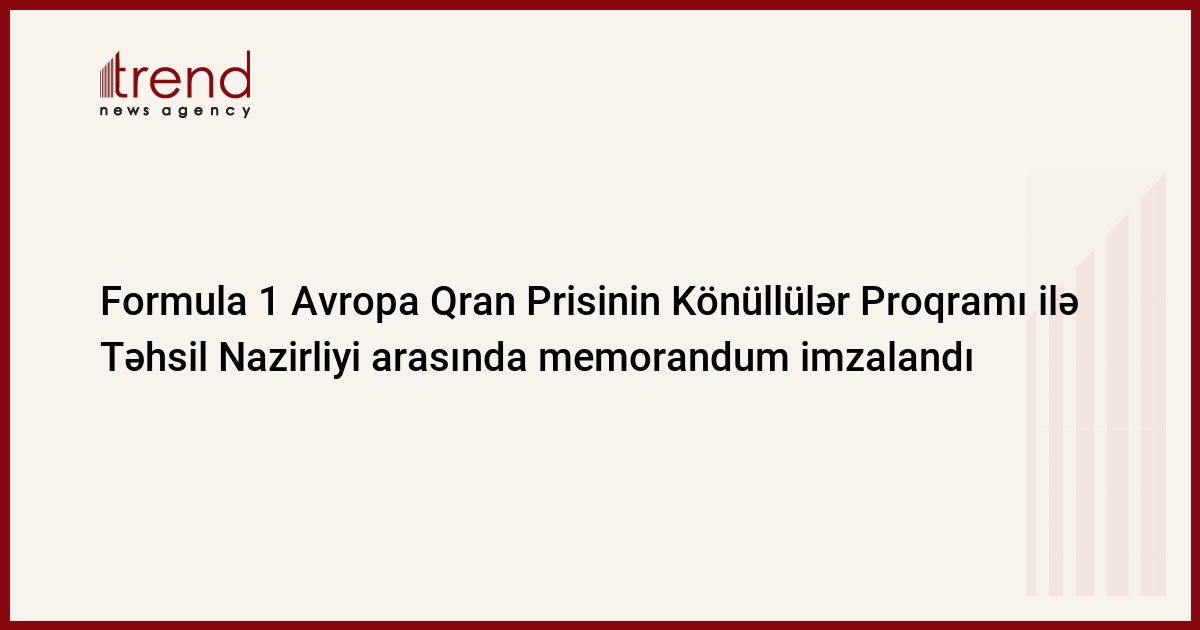 Bu gün Formula 1 Avropa Qran Prisinin Könüllülər Proqramı ilə Təhsil Nazirliyinin "Bir" Tələbə-Könüllü Proqramı arasında əməkdaşlığa dair memorandum imzalanıb.