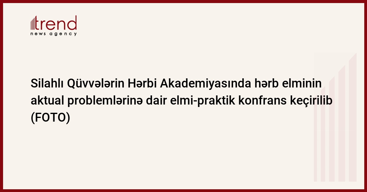Müdafiә naziri general-polkovnik Zakir Həsənovun tәsdiq etdiyi illik plana әsasәn, aprelin 27də Silahlı Qüvvәlәrin Hәrbi Akademiyasında "Hәrb elminin aktual problemləri" mövzusunda elmi-praktik konfrans keçirilib.