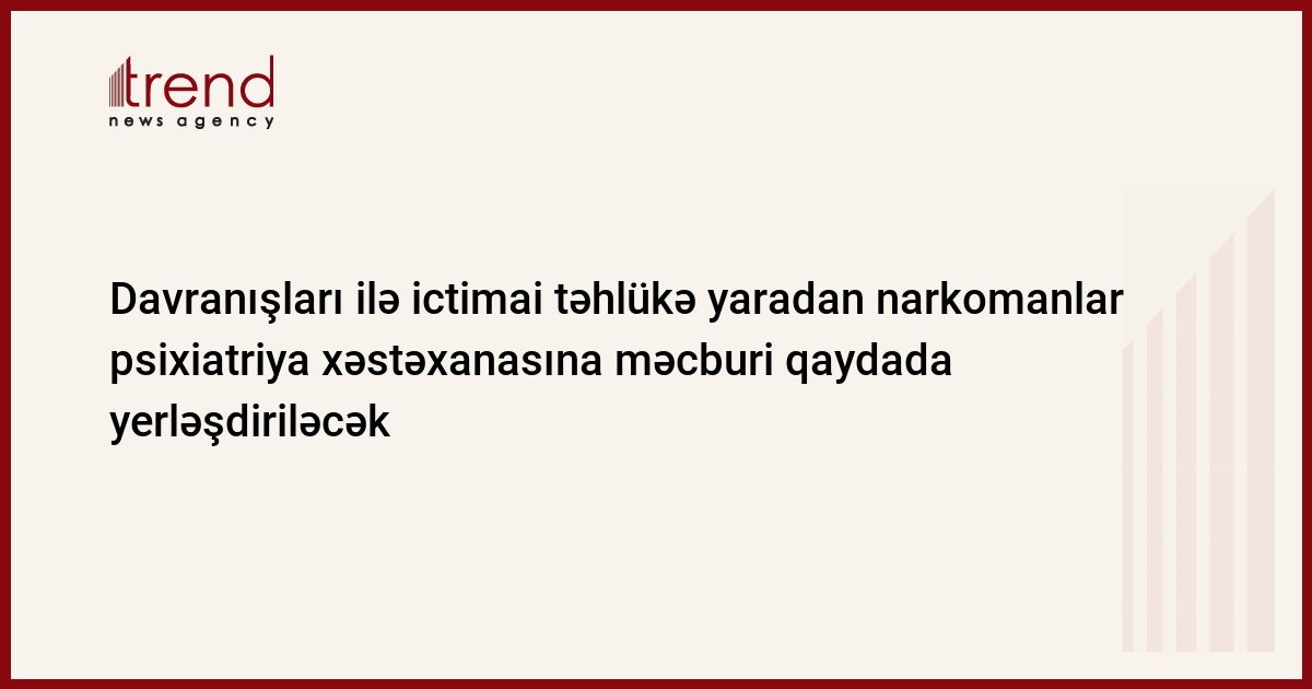 Qanuna edilən yeni dəyişikliklərdə isə inzibati həbs nəzərdə tutan inzibatı xəta törətməmiş narkomanlar da barəsində məcburi tədbirlər tətbiqi edilən şəxslərin sırasına əlavə edilib. Belə ki, yeni dəyişikliklərə əsasən, cinayət və ya inzibati həbs nəzərdə tutan inzibatı xəta törətməmiş, lakin öz davranış və hərəkətləri nəticəsində dəfələlərlə yaxın qohumlarına maddi və mənəvi zərər yetirmiş, uşaqların tərbiyəsinə mənfi təsir göstərmiş, onların hüquqlarını kobudcasına pozmuş, təklif olunmuş könüllü müalicədən dəfələrlə imtina etmiş narkomanlıq xəstəliyinə dücar olan şəxslər barəsində Mülki Prosessual Məcəlləyə uyğun olaraq, məcburi tibbi tədbirlər tətbiq ediləcək.