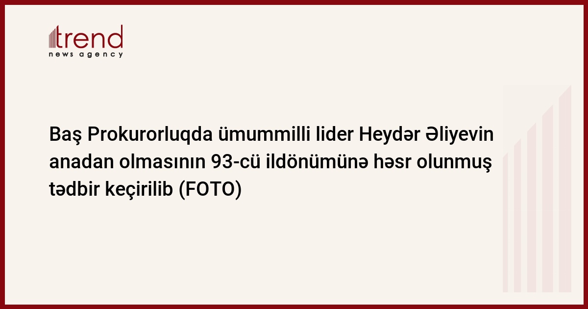 Mayın 6-da Baş Prokurorluqda xalqımızın ümummilli lideri Heydər Əliyevin anadan olmasının 93-cü ildönümünə həsr olunmuş mərasim keçirilmişdir.