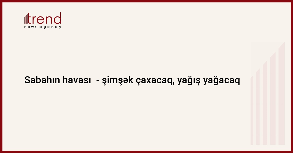 Azərbaycanın rayonlarında bəzi yerlərdə şimşək çaxacağı, arabir yağış yağacağı gözlənilir. Dağlıq ərazilərdə dolu düşəcəyi ehtimalı var. Qərb küləyi ayrı-ayrı yerlərdə arabir güclənəcək.