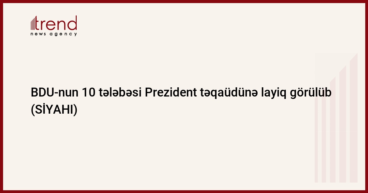 Bakı Dövlət Universitetinin (BDU) on tələbəsi Prezident təqaüdünə layiq görülüb.