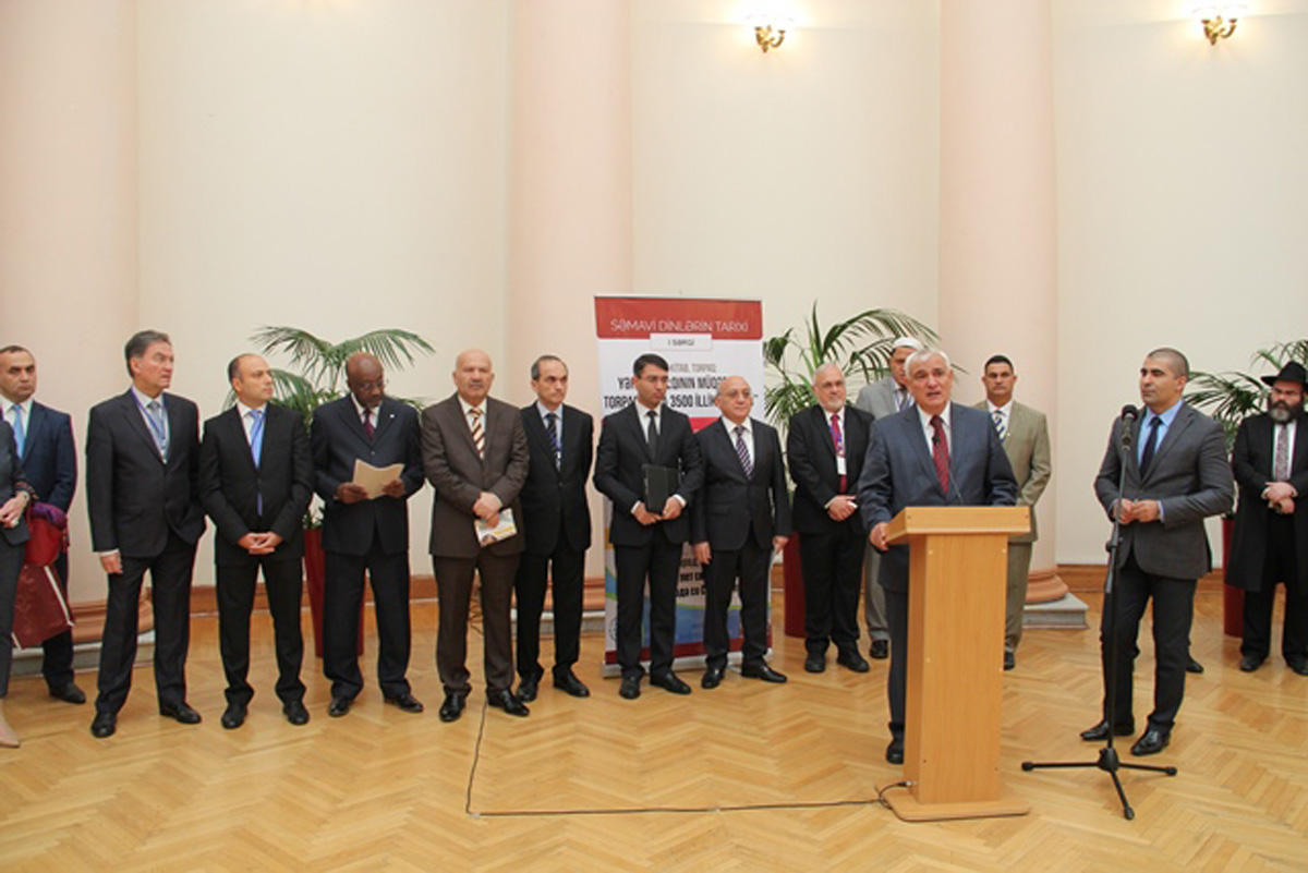 Dini Qurumlarla İş üzrə Dövlət Komitəsinin sədri Mübariz Qurbanlı tədbiri giriş sözü ilə açaraq İudaizm dininə həsr edilən “Xalq, kitab, torpaq: Yəhudi xalqının Müqəddəs torpaqlarla 3500 illik əlaqəsi” mövzusunda sərginin maarifləndirici xarakter daşıdığını deyib. Forum çərçivəsində təşkil edilən sərgi barədə məlumat verən Komitə sədri bildirib ki, yəhudiliyə həsr olunan sərgidə bu xalqın 3500 illik tarixinə, etnoqrafiyasına aid nümunələr nümayiş olunur. O, multikultural və tolerant dəyərlərinə görə digər ölkələrə örnək olan Azərbaycanda bu cür sərgilərin təşkilini yüksək dəyərləndirib. Vurğulanıb ki, sərgi Azərbaycanda tolerantlığın ən gözəl nümunələrindəndir.