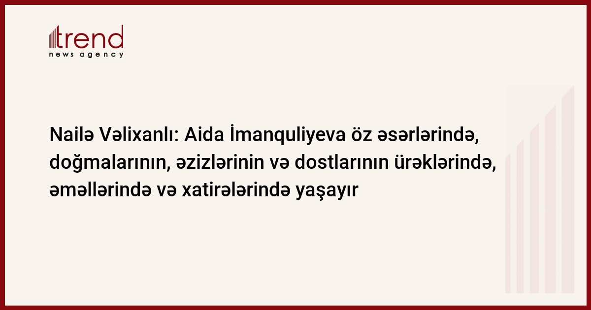 Azərbaycan Milli Elmlər Akademiyası (AMEA) Milli Azərbaycan Tarixi Muzeyinin direktoru, akademik, professor, AMEA-nın həqiqi üzvü Nailə Vəlixanlı Aida xanım haqqında xatirələrini Trend-lə bölüşüb.