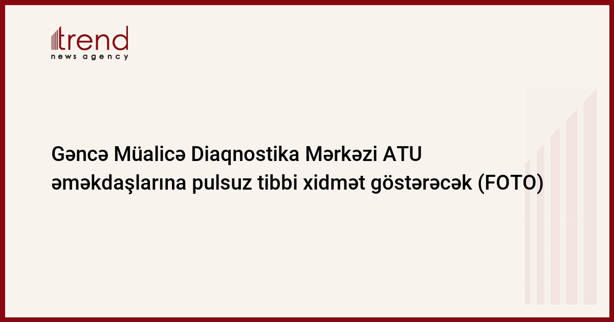 Azərbaycan Texnologiya Universiteti (ATU) ilə Gəncə Müalicə Diaqnostika Mərkəzi arasında memorandum imzalanıb. ATU-nun mətbuat xidmətindən Trend-ə verilən məlumata görə, memorandum universitetin əməkdaşlarına səhiyyə müəssisəsi tərəfindən pulsuz müayinə və güzəştli müalicə xidmətləri göstərilməsini nəzərdə tutur.