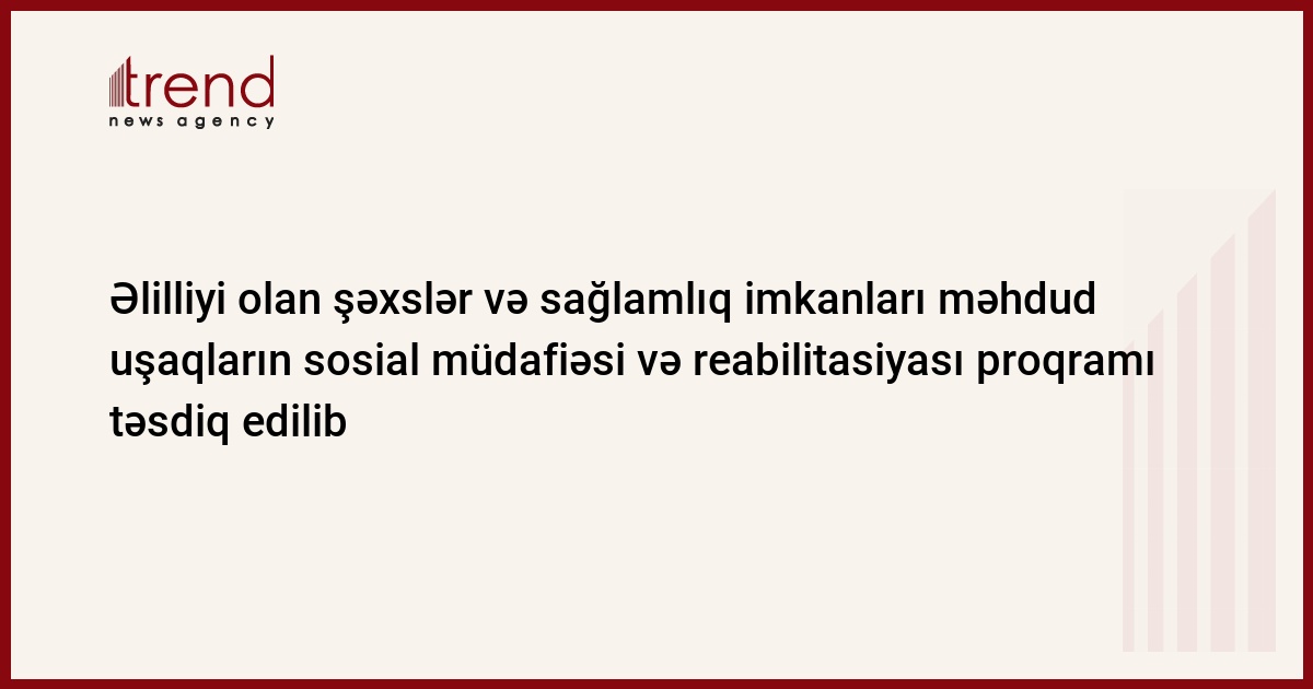 Əmək və Əhalinin Sosial Müdafiəsi Nazirliyi tərəfindən (ƏƏSMN) “2017-ci ildə əlilliyi olan şəxslərin və sağlamlıq imkanları məhdud uşaqların sosial müdafiəsi və reabilitasiyası Proqramı” təsdiq edilib.