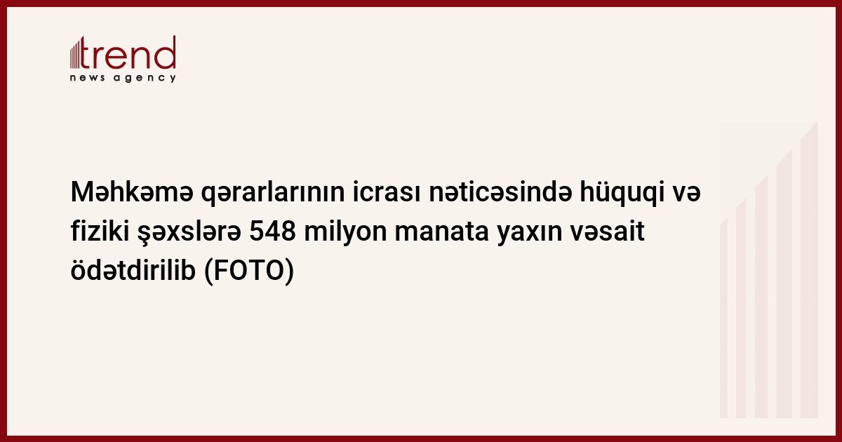 Məhkəmə qərarlarının icrası nəticəsində hüquqi və fiziki şəxslərə 548 milyon manata yaxın vəsait ödətdirilib.