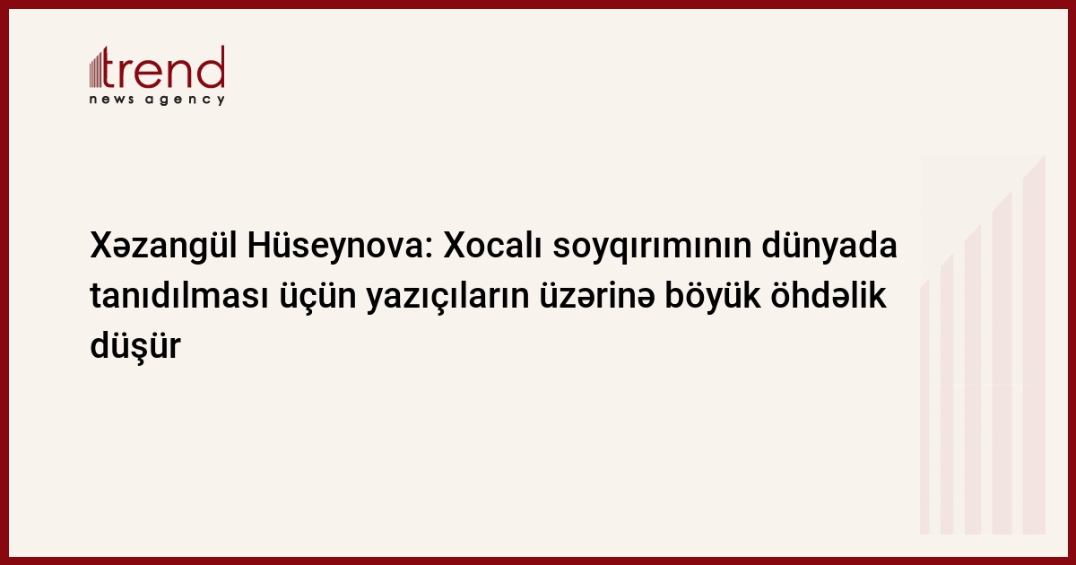 X.Hüseynova 1992-ci il fevralın 25-dən 26-na keçən gecə Xocalı şəhərində ermənilərin törətdikləri dəhşətli hadisələrin Azərbaycanın tarixinə qanlı hərflərlə yazıldığını söyləyib. Xocalı haqqında həqiqətin dünyaya çatdırılması, bu faciənin xalqımıza qarşı soyqırımı aktı kimi tanınması üçün Azərbaycan dövlətinin bütün zəruri addımları atdığını bildirib. Bildirib ki, bu sahədə məqsədyönlü fəaliyyət ümummilli lider Heydər Əliyev Azərbaycanda siyasi hakimiyyətə qayıdandan sonra başlanıb. Ulu öndərin təşəbbüsü ilə Xocalı soyqırımına siyasi-hüquqi qiymət verilib, fevralın 26-sı “Xocalı soyqırımı günü” elan edilib.