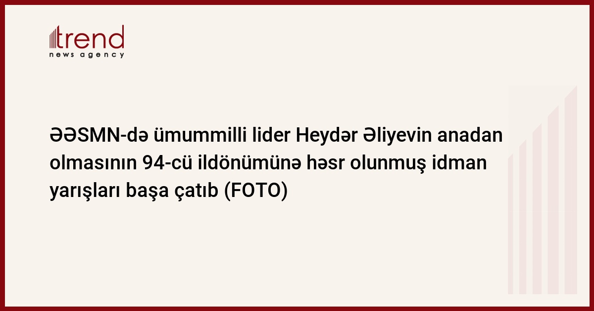 Müstəqil Azərbaycan dövlətinin memarı və qurucusu, ümummill lideri Heydər Əliyevin anadan olmasının 94-cü ildönümü münasibətilə Əmək və Əhalinin Sosial Müdafiəsi Nazirliyinin (ƏƏSMN) struktur bölmələrinin əməkdaşları arasında təşkil olunan idman (mini-futbol və şahmat) yarışları başa çatıb.