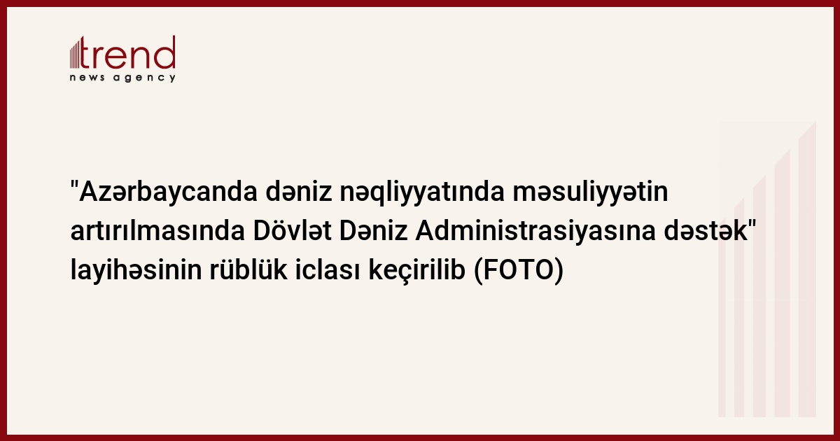 Azərbaycan Respublikası Dövlət Dəniz Administrasiyasının mətbuat xidmətindən Trend-ə verilən məlumata görə, Dövlət Dəniz Administrasiyasında cari ilin 4 may tarixində Avropa İttifaqı tərəfindən maliyyələşdirilən “Azərbaycan Respublikasında dəniz nəqliyyatı sahəsində məsuliyyətin artırılmasında Dövlət Dəniz Administrasiyasına dəstək” adlı tvinninq layihəsinin rüblük iclası keçirilib.