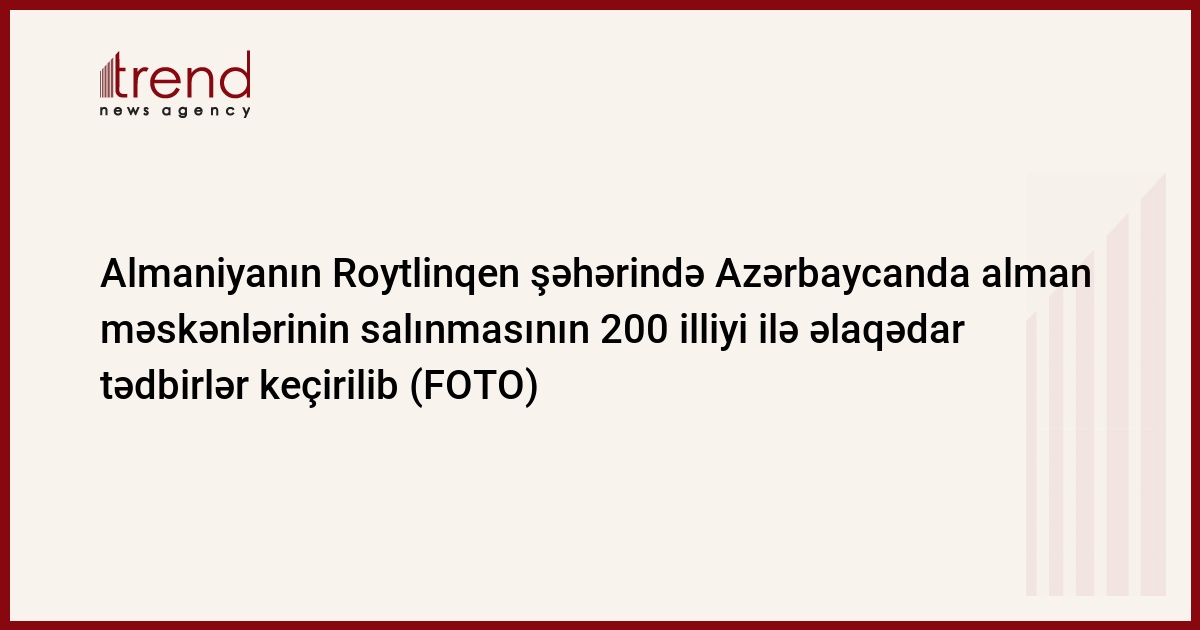 Cari ilin 5-6 may tarixlərində Almaniyanın Roytlinqen şəhərində Azərbaycanda alman məskənlərinin salınmasının 200 illiyi münasibətilə tədbirlər keçirilib.