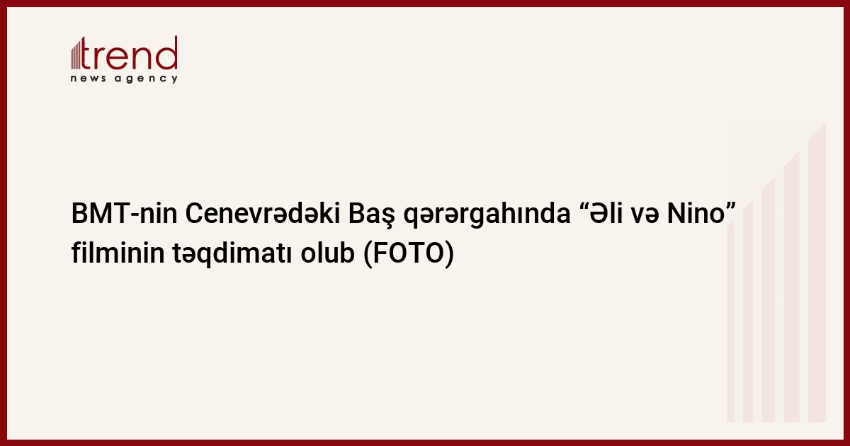 Azərbaycanın Cenevrədə BMT bölməsi və digər beynəlxalq təşkilatlar yanında daimi nümayəndəliyinin, BMT-nin Cenevrə ofisinin təşkilatçılığı və SOCAR tredinq şirkətinin dəstəyi ilə BMT nin Cenevrədəki Baş qərərgahındakı "Millətlər sarayı"nda “Əli və Nino” filminin təqdimatı keçirilib.