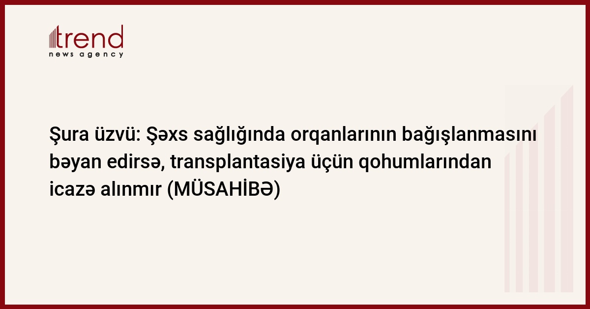 Səhiyyə Nazirliyinin Transplantologiya işinin təşkili üzrə Əlaqələndirici Şurasının üzvü, Mərkəzi Neftçilər Xəstəxanasının (MNX) Cərrahiyyə və Orqan Transplantasiyası şöbəsinin müdiri, tibb üzrə fəlsəfə doktoru Mircəlal Kazıminin Trend-ə müsahibəsi