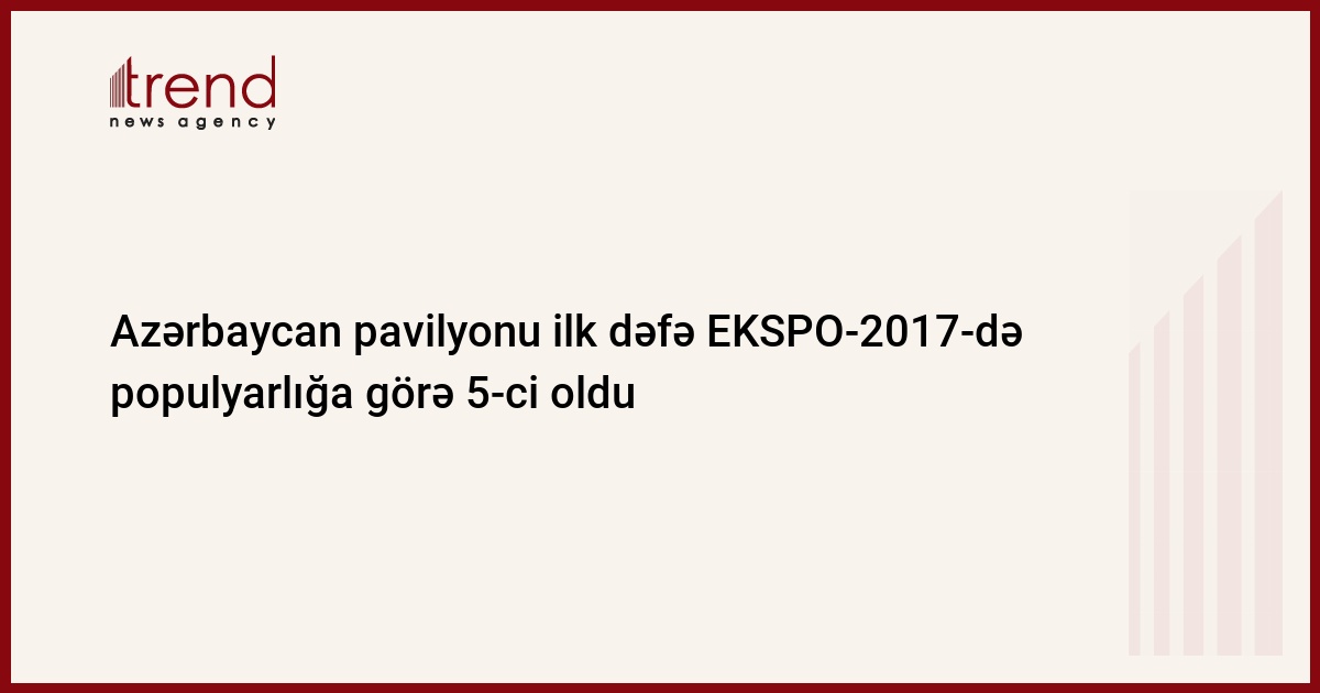Azərbaycan pavilyonu ilk dəfə olaraq EKSPO-2017-də ən çox ziyarət olunan beynəlxalq pavilyonların TOP 5-nə daxil olub.