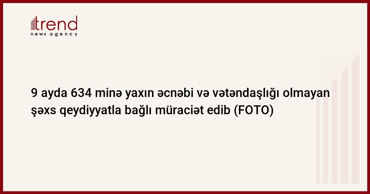 9 ay ərzində ölkədə qalma müddətinə müvafiq olaraq 633 min 827 əcnəbi və vətəndaşlığı olmayan şəxs olduğu yer üzrə qeydiyyata alınmaqla bağlı müraciət edib.