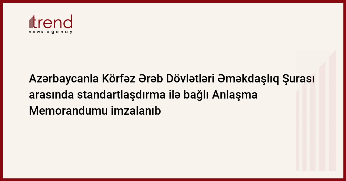 Standartlaşdırma, Metrologiya və Patent üzrə Dövlət Komitəsindən Trend-ə verilən məlumata görə, Azərbaycan - Körfəz Ərəb Dövlətləri Əməkşdalıq Şurası üzv ölkələrinin biznes forumu çərçivəsində “Azərbaycan Standartlaşdırma İnstitutu” publik hüquqi şəxslə (ASİ) Körfəz Ərəb Dövlətləri Əməkdaşlıq Şurasının (KƏŞ) Standartlaşdırma Təşkilatı arasında texniki əməkdaşlığa dair Anlaşma Memorandumu imzalanıb. Sənədi ASİ-nin Baş direktoru v.i.e. Namiq Tağıyev və KƏŞ-in Standartlaşdırma Təşkilatının Baş katibi Nəbil Molla imzalayıb.