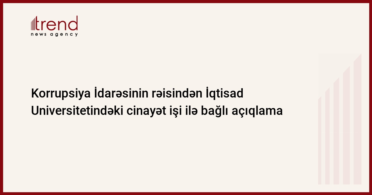 Qeyd edək ki, sentyabrın 21-də Azərbaycan Dövlət İqtisad Universitetinin vəzifəli şəxsləri barəsində cinayət işi başlanıb. Universitetdə dövlət büdcəsindən ayrılan vəsaitlərin və büdcədənkənar daxilolmaların proqnozlaşdırılması və icrasının auditinin nəticəsinə dair Hesablama Palatasından daxil olmuş material Baş prokuror yanında Korrupsiyaya qarşı Mübarizə Baş İdarəsində araşdırılıb.