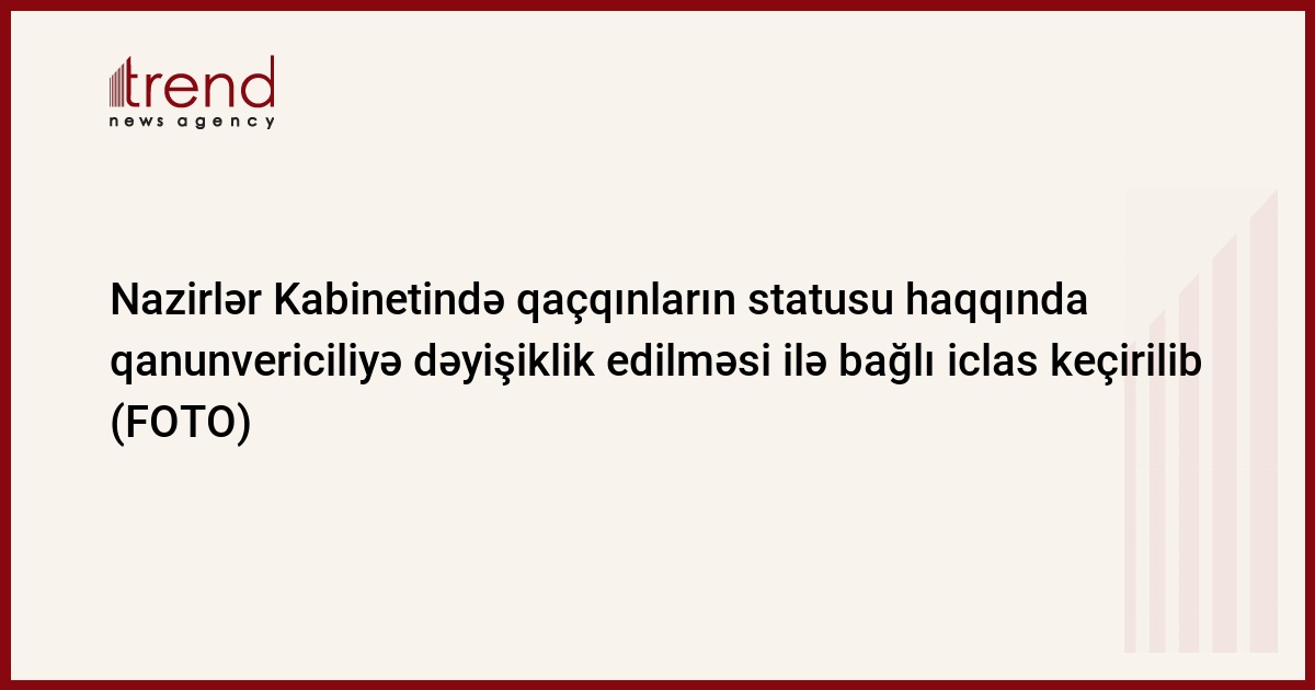 Nazirlər Kabinetində ölkəmizin mövcud qanunvericiliyində (“Qaçqınların və məcburi köçkünlərin (ölkə daxilində köçürülmüş şəxslərin) statusu haqqında” Azərbaycan Respublikasının Qanununa) “əlavə himayə” anlayışının daxil edilməsi təşəbbüsü üzrə görülmüş işlər və nəzərdə tutulan tədbirlərin müzakirəsi ilə bağlı iclas keçirilib.