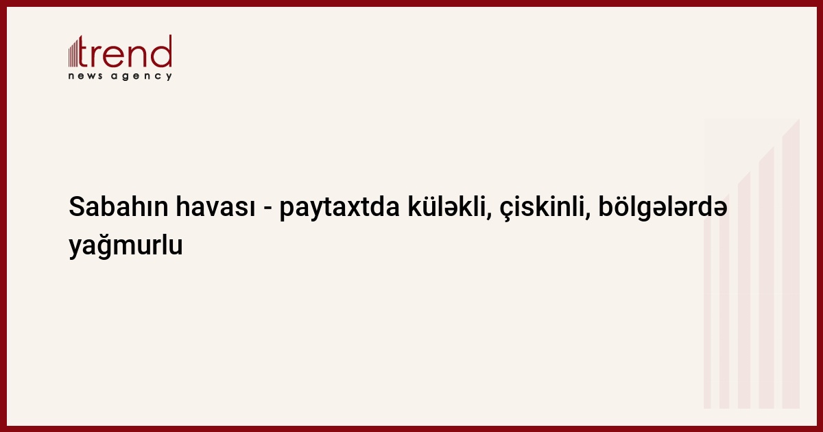 Ekologiya və Təbii Sərvətlər Nazirliyinin Milli Hidrometeorologiya Departamentindən Trend-ə verilən məlumata görə, sabah Bakıda və Abşeron yarımadasında buludlu hava şəraiti üstünlük təşkil edəcək.