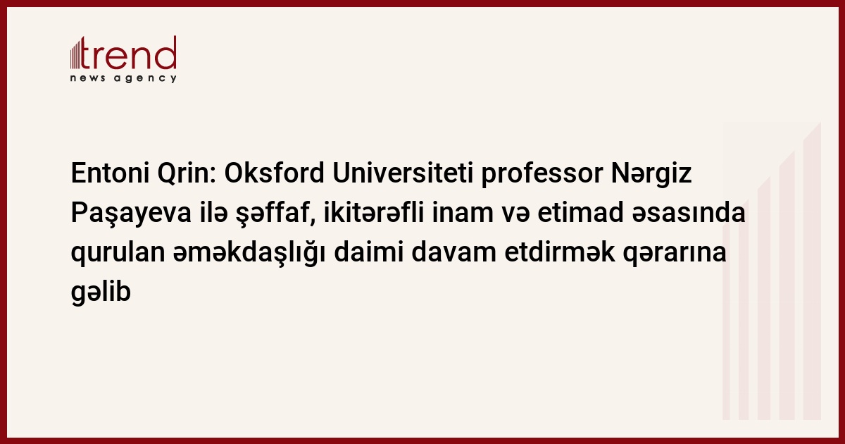 Trend-in məlumatına görə, görüşdə Oksford Universitetinin Nizami Gəncəvi Mərkəzinin 2017-ci ildəki elmi-tədris fəaliyyəti müzakirə edilib. Başlıca olaraq 2018-ci ildən etibarən Mərkəzin Universitetdə daimi fəaliyyətinə dair həyata keçiriləcək rəsmi, protokol mərhələləri və elmi-tədris planları haqda geniş fikir mübadiləsi aparılıb. İlk növbədə, Universitetin rəsmi nümayəndəsi cənab Qrin bu illər ərzində Oksford Universitetinin Nizami Gəncəvi Mərkəzinin Azərbaycan tərəfdən rəhbəri akademik Nərgiz Paşayeva ilə şəffaf, ikitərəfli inam və etimad əsasında qurulmuş əməkdaşlıqdan məmnunluq hissini ifadə edib və Universitetin rəhbərliyi adından akademik N. Paşayevaya öz minnətdarlığını çatdırıb. O qeyd edib ki, dünyanın ən qədim və ən nüfuzlu elm ocaqlarından sayılan Oksford Universiteti dəyişməz qayda olaraq əməkdaşlıq etdiyi tərəf müqabilini həmişə böyük diqqətlə seçir və əsl akademik tutumu, davamlı elmi-pedaqoji təcrübəsi olmayan və alimlərin təmsil edilmədiyi təklif və layihələrdə iştirak etmir. Cənab Qrin Oksford Universitetinin Nizami Gəncəvi Mərkəzinin fəaliyyət göstərdiyi beş il ərzində artıq özünün akademik simasını doğrultduğunu və bu Universitetin bundan sonra daimi bir hissəsinə çevrilməsini əhəmiyyətli tarixi bir an kimi qiymətləndirib. Universitetin rəsmi nümayəndəsi qeyd edib ki, bu tarixdən başlayaraq Oksford Universiteti akademik Nərgiz Paşayevanın rəhbərliyi altında Nizami Gəncəvi Mərkəzinin Oksford Universitetində daimi fəaliyyətinin təmin edilməsi üçün bütün səyləri göstərməyə hazırdır.