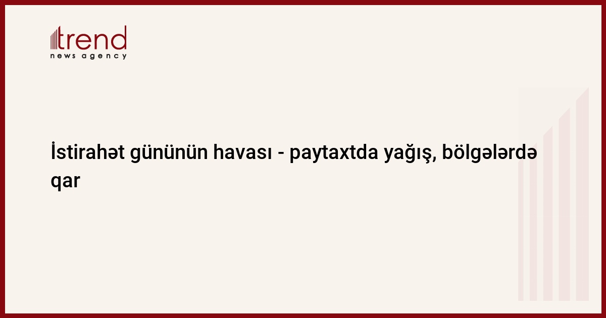 Arabir zəif duman olacaq. Arabir güclənən şimal-qərb küləyi əsəcək. Havanın temperaturunun Abşeron yarımadasında gecə 4-7, gündüz 8-11, Bakıda gecə 4-6, gündüz 8-10 dərəcə isti olacağı gözlənilir.