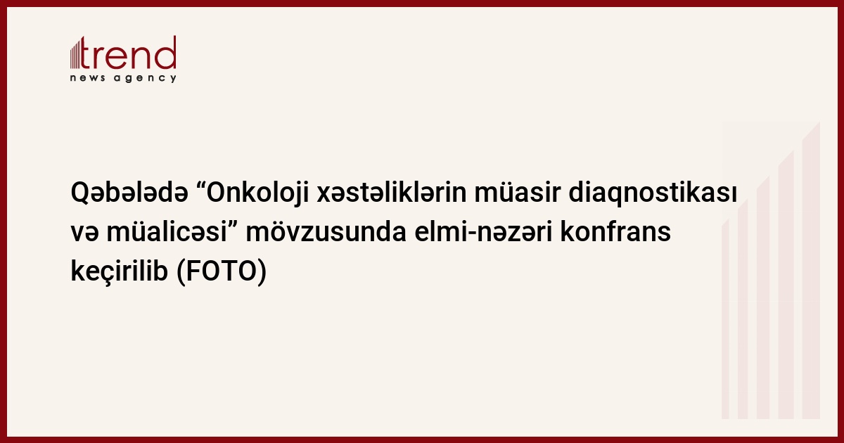 Heydər Əliyev Fondunun “Regional İnkişaf” İctimai Birliyinin (RİİB), Səhiyyə Nazirliyi və Milli Onkologiya Mərkəzinin (MOM) birgə təşkilatçılığı ilə dekabrın 23-də Qəbələ Heydər Əliyev Konqres Mərkəzində ətraf 15 rayonda onkologiya və ümumi terapiya sahəsində fəaliyyət göstərən 150-dən çox həkim üçün “Onkoloji xəstəliklərin müasir diaqnostikası və müalicəsi” mövzusunda elmi-nəzəri konfrans keçirilib. Konfransda Milli Onkologiya Mərkəzinin yüksəkixtisaslı həkim heyəti müxtəlif məruzələrlə çıxış ediblər.